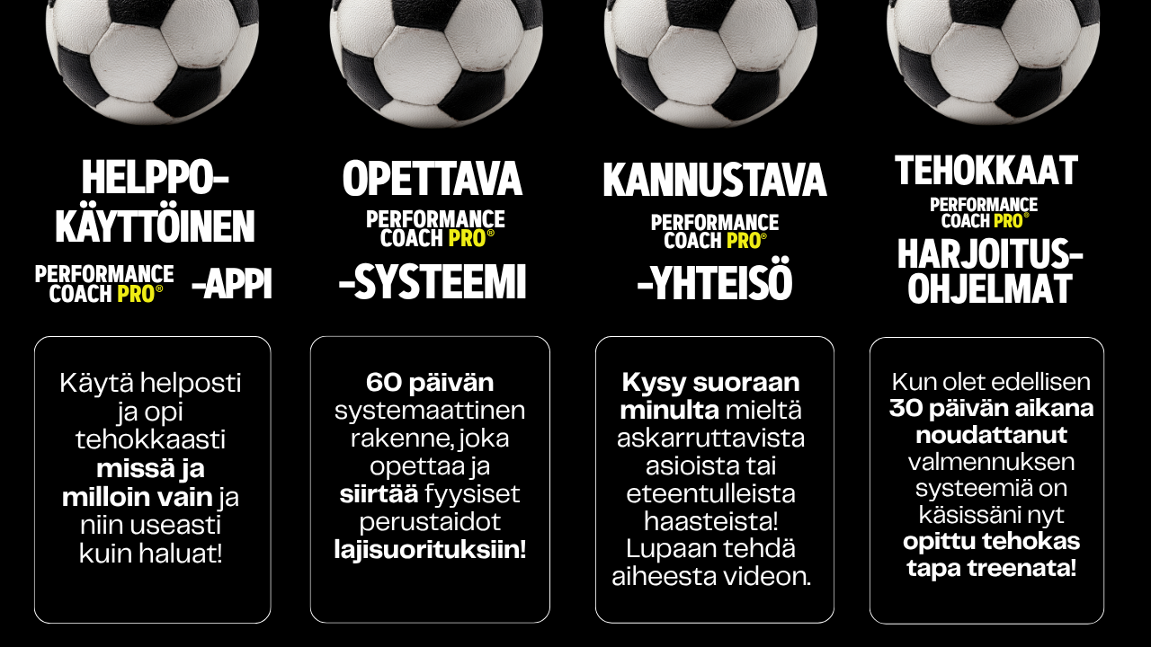 Tämä valmennus on suunnattu juniorijalkapalloilijoille, jotka haluavat kehittyä fiksusti, turvallisesti ja varmasti – ja ennen kaikkea aikaansa hukkaamatta!