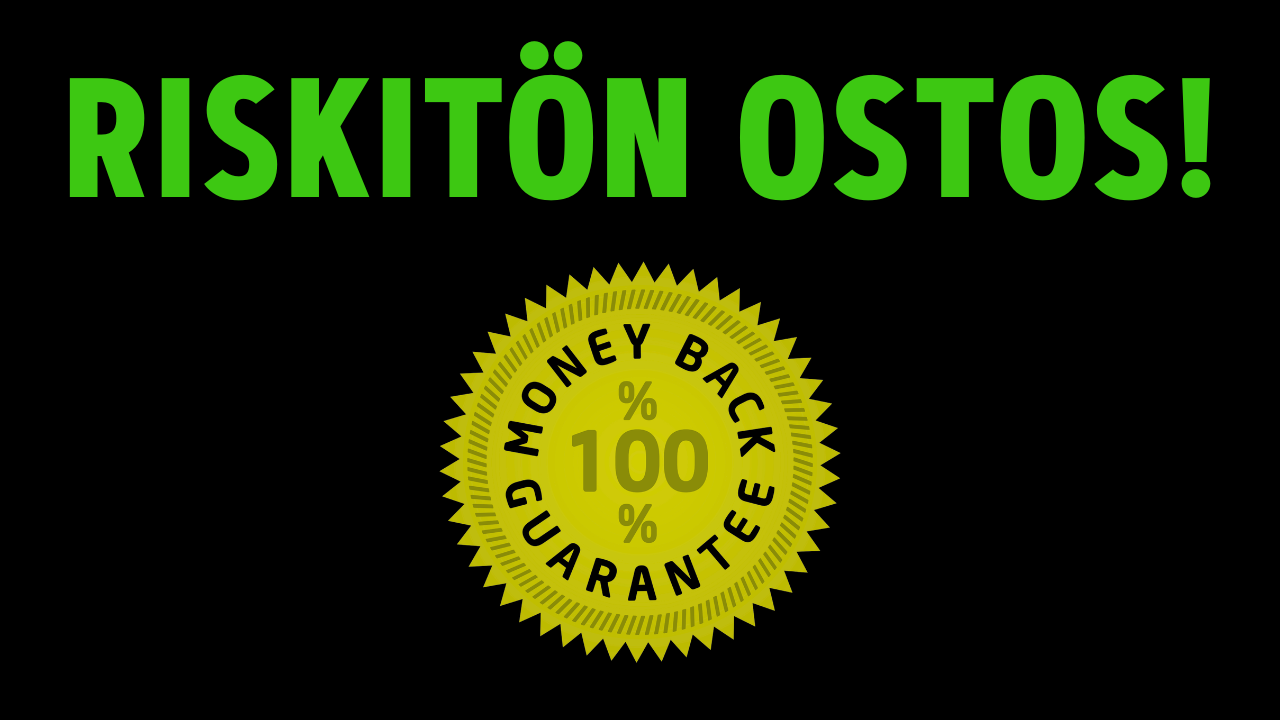 Jos vielä pohdit, onko tämä valmennus varmasti oikea valinta, voit olla huoleti – mukana on 30 päivän ja 100 % tyytyväisyystakuu.